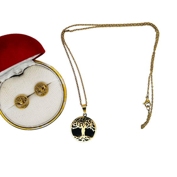 Conjunto Collar y Pendientes de Shungita, árbol de la vida