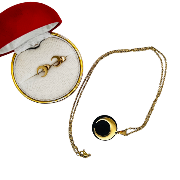 Conjunto Collar y Pendientes de Shungita, luna creciente