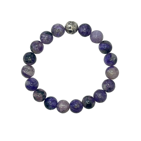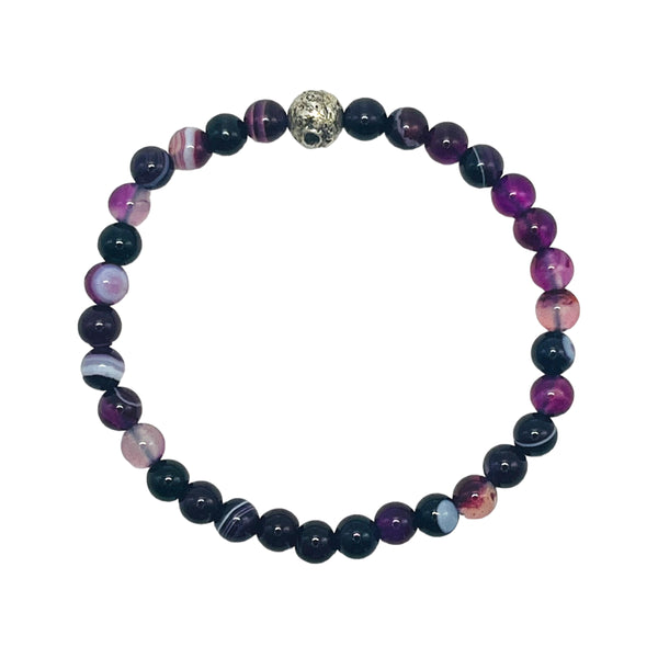 Pulsera Ágata Lila Bandeada en plata de ley