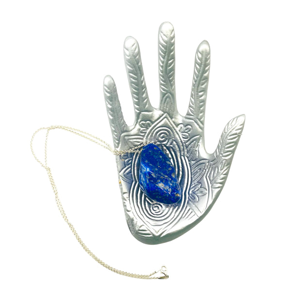Lapislázuli con pirita en cadena de plata de ley