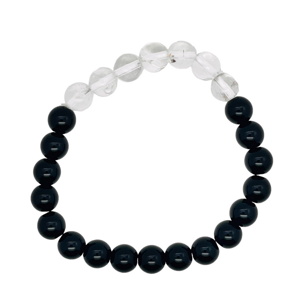 Pulsera Cuarzo con Obsidiana Negra